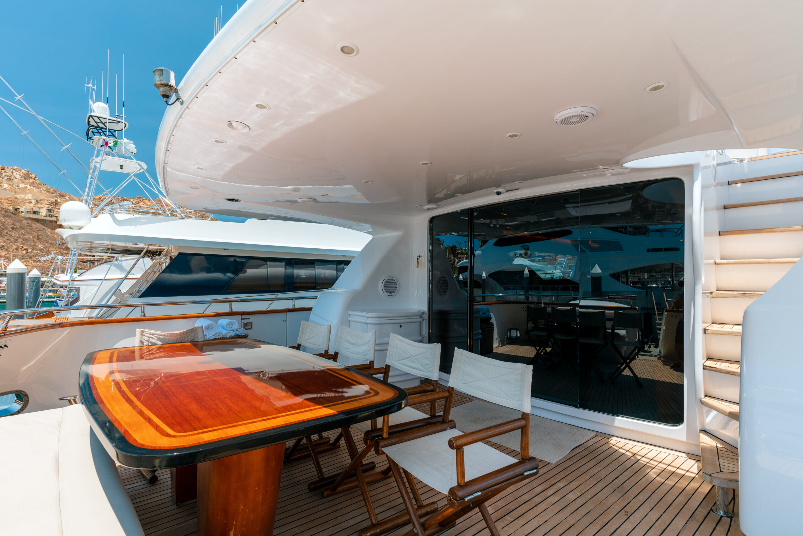 Designed for discerning guests who appreciate the finer things in life, this yacht epitomizes the essence of luxury cruising. The expansive front area invites you to bask in the warmth of the Cabo sun on plush sunbathing lounges, while the shaded back seating area offers a cool, comfortable haven for relaxation.