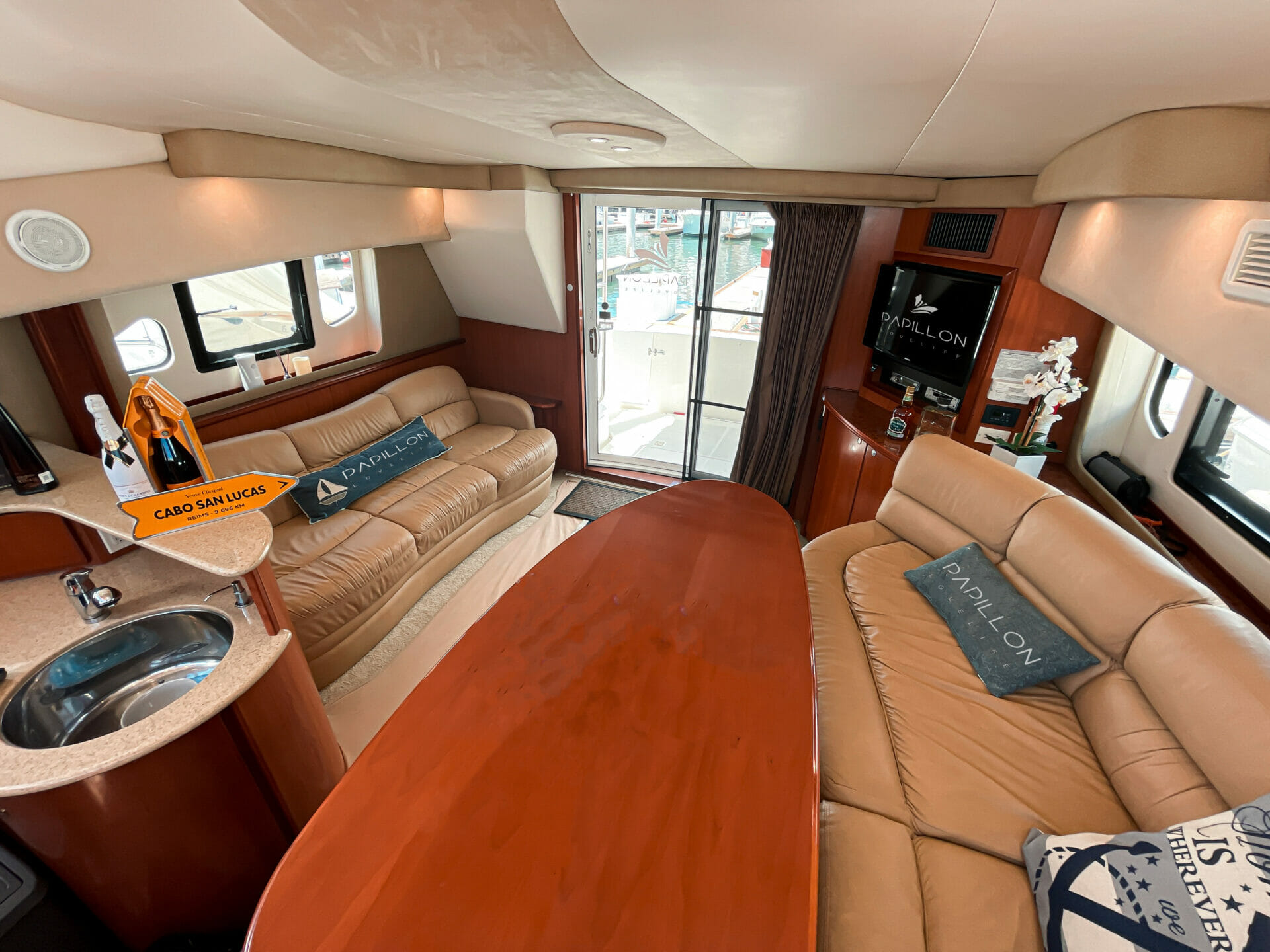 Pura Vida is a 42 ft Silverton Sport Bridge with ample bow and bridge space allowing luxury cruising, whale watching, snorkeling and fun! The spacious salon lets you get out of the sun and enjoy the comforts of luxury cruising. We have Bluetooth, A/C, TV, a kitchen with microwave and coffee machine, bathroom, and towels for you to use.