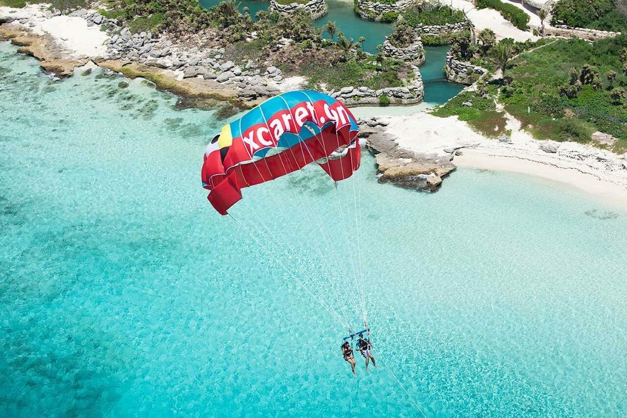 Get the best views of the Caribbean Sea on a parasailing adventure in Playa del Carmen