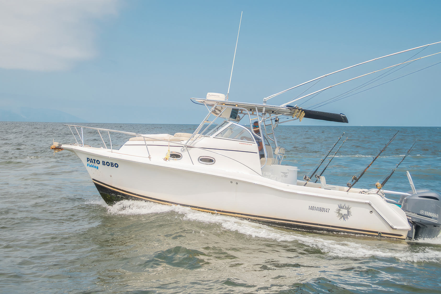 Sport Kat is a 29 feet boat fully equipped for professional fishing for 5 passengers. It can also be used for various purposes such as recreational trips, snorkeling, diving and more, for up to 9 passengers. It is equipped with areas of shade and sun, stereo sound for the enjoyment of your music of choice, a bathroom, a cooler, towels and more.